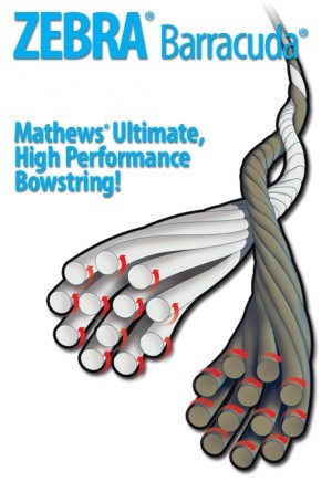 Zebra Barracuda strings come standard on our premier Mathews and McPherson Series bow models. Barracuda can be purchased in most sizes to fit an extensive list of compound, recurve and crossbow makes and models. Barracuda bowstrings are available through your local archery retailer.
